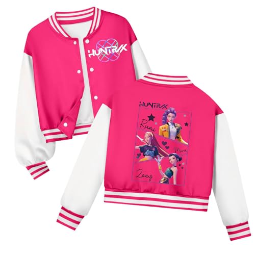 K-kpop D-Demon H-Hunters for Girls Boys Baseball Jacket Long Sleeve Oversized Sweatshirts with Pockets Anime Graphic Bomber Jacket Streetwear for School Students Hoodies Y2k Pullover Sweatshirt