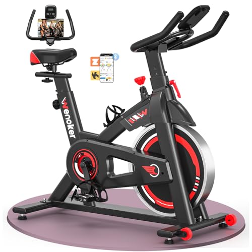 Exercise Bike App Compatible, Wenoker Spin Bike Indoor Cycling Exercise Equipment for Home Gym Use, 350lbs Weight Capacity Fitness Bike