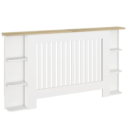 HOMCOM Radiator Cover with Open Storage Shelves, Vertical Slatted Cabinet Shelf Heater Cover for Living Room, Hallway, Large, White (H: 83 / W: 152 / D: 19 cm)