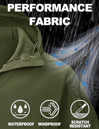 TACVASEN Waterproof Jacket Men Softshell Fleece Jacket Outdoor Camping Hiking Co...
