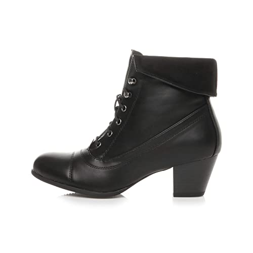 Ajvani Womens Ladies mid Heel lace up Vintage Fur Cuff Pixie Ankle Boots, Black ...