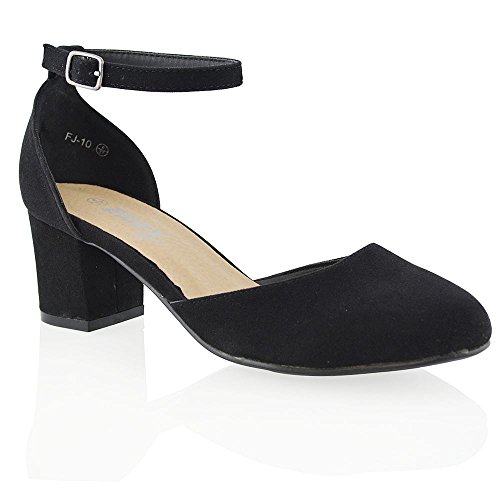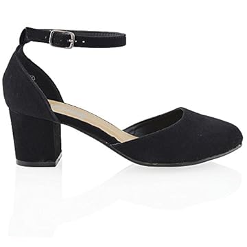 New Womens Low Mid Block Heel Ankle Strap Bucklke Ladies Sandals Court Shoes 5 U...