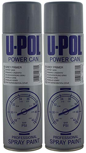 U-POL 2 x Power Can GREY PRIMER 500ml Aerosol UPol Powercan Paint Grey Primer - ...