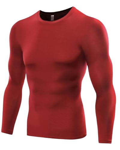 The Pure Blue Men's Red Long-Sleeved Compression Top - [Small] Tight Fit Body Sh...