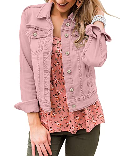 Roskiky Women'S Denim Fitted Jacket Pink Ladies Jacket Cropped Jeans Jacket Wome...
