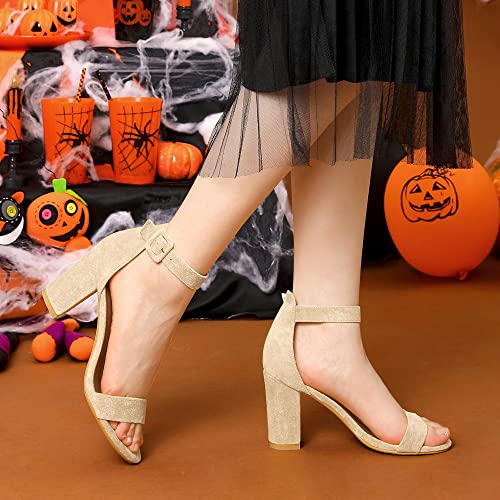 Allegra K Women's Chunky High Heel Ankle Buckle Strap Sandals Beige 5.5 UK/Label...