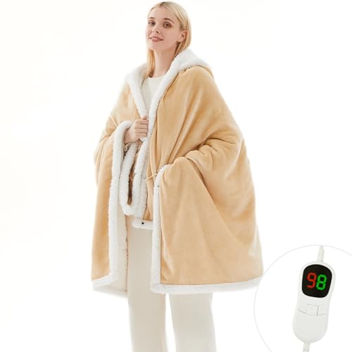 PLOATH - Heated Electric Blanket: Heated Poncho, Hooded Blanket, with 10 Heating...