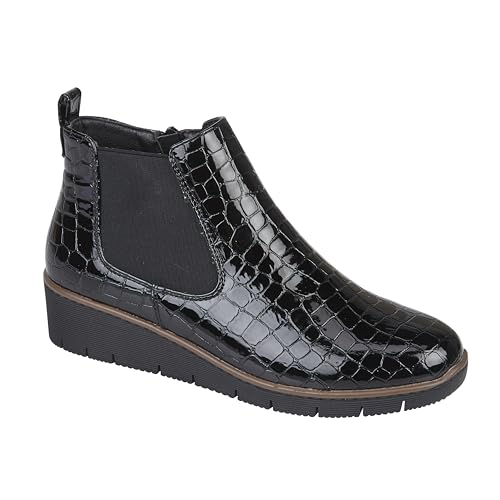 Jo & Joe Ladies Croc Patent Chelsea Wedge Ankle Boot With Side Gusset, Inside Zi...
