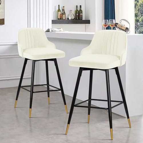 Bekrvio 65CM Bar Seats Set of 2, Modern Velvet Swivel Bar Stools with Arms, Back...