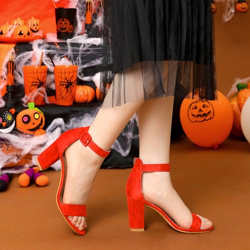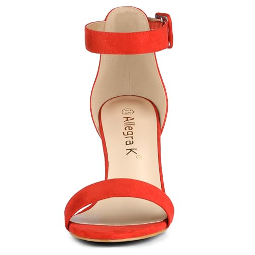 Allegra K Women's Chunky High Heel Ankle Buckle Strap Sandals Orange 6.5 UK/Labe...