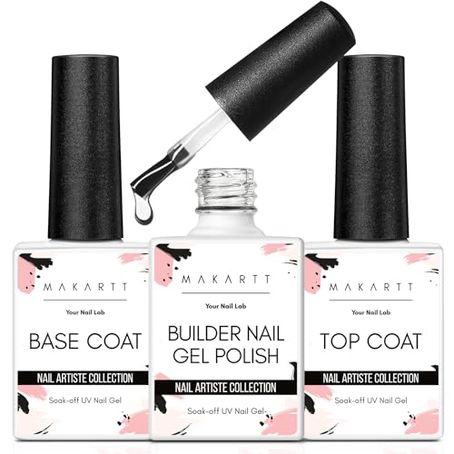 Makartt Builder Nail Gel with Top Coat Nail Polish & Base Coat Set - 3Psc No Wip...