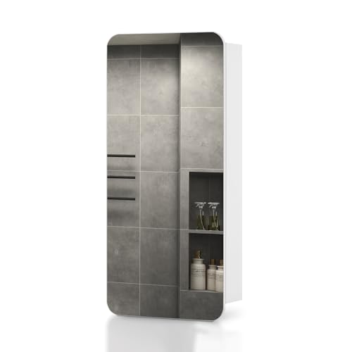 TUKAILAi Single Door Bathroom Mirror Cabinet, 45 x 90cm White Wall Mounted Stora...