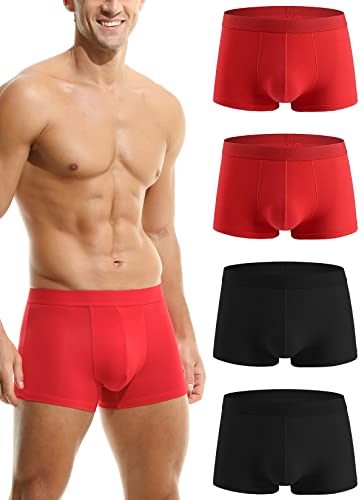 HOEREV Men's Bamboo Fibre Boxer Shorts Trunks Underwear, Pack of 4, 2 Red 2 Blac...