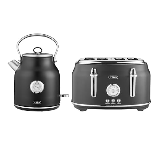Tower Renaissance Kitchen Set, 1.7L Quiet Boil Kettle & 4 Slice Toaster, Black, ...