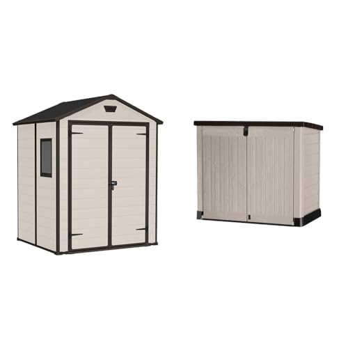 Keter Manor Outdoor Garden Storage Shed, Beige, 6 x 5 ft & Store It Out Pro Outd...