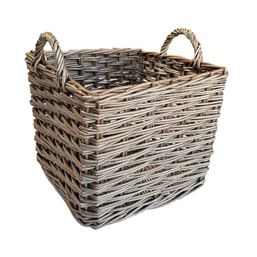 Arthur Cameron Medium Square Rapallo Handmade Natural Wicker Storage Basket, Ant...