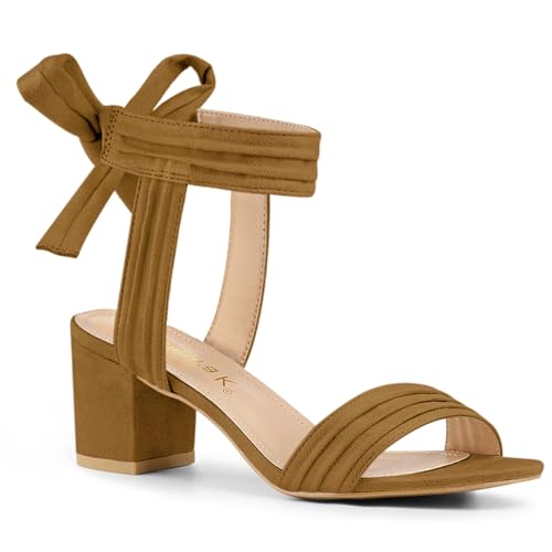Allegra K Women's Ankle Tie Back Block Heels Sandals Brown 6 UK/Label Size 8 US...