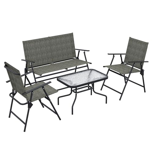 Outsunny Outdoor 4 Pieces Patio Furniture Set with Breathable Mesh Fabric Seat &...