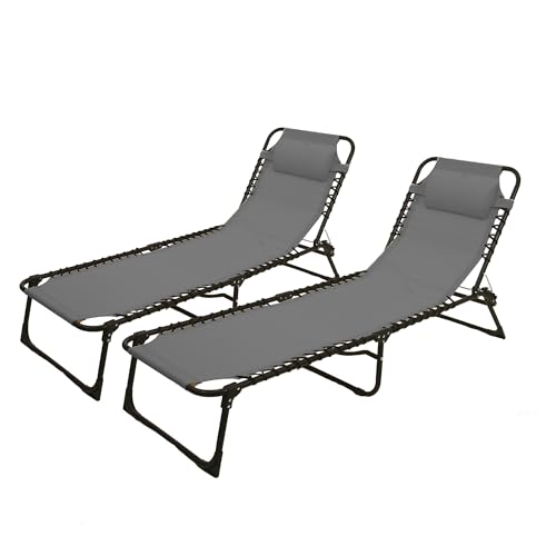 Solterra Garden Sun Lounger with Headrest – Two Pack - Adjustable Reclining Ou...
