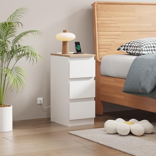 Pantanal 25CM Slim Bedside Table with Charging Station, 3 Drawers Nightstand Bed...