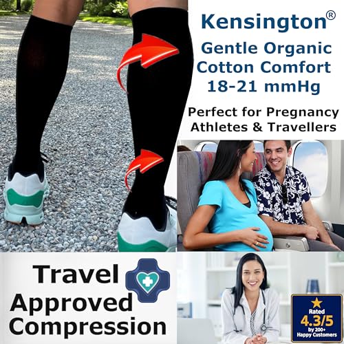 Kensington Compression Socks for Women & Men – Cotton Flight Socks for Travel,...