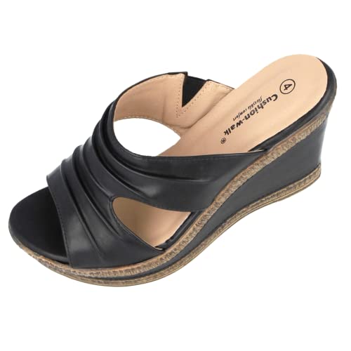 Ladies Leather Lined Peep Toe Mid Wedge Mule Sandals (Black, numeric_7)...