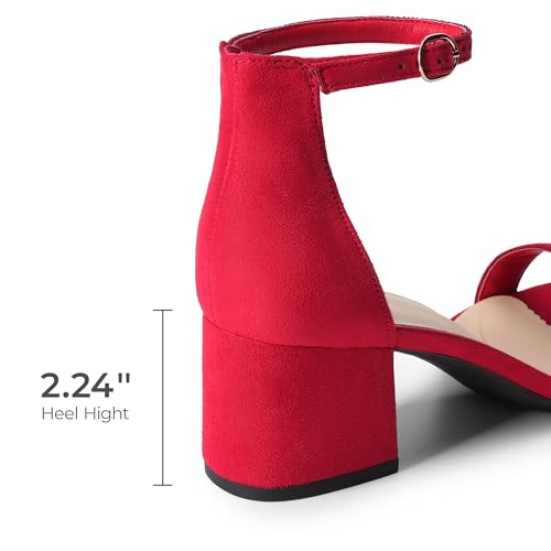DREAM PAIRS Womens Bridal Sandals Ladies Mid Low Block Heels Sandals,RED/Suede S...