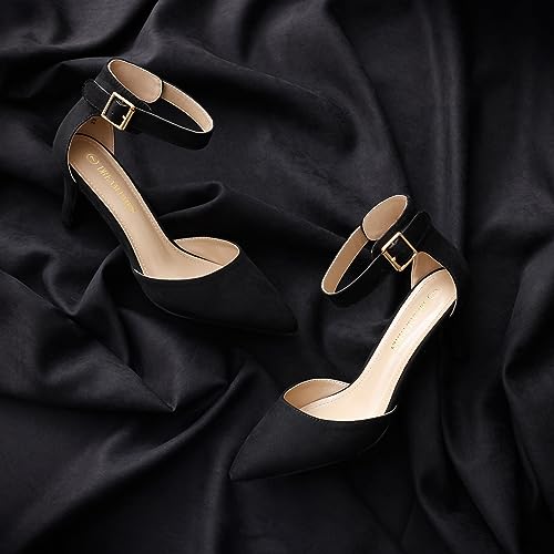 DREAM PAIRS Womens Court Shoes Pointed Toe Low Kitten Heel Ladies Pumps Ankle St...