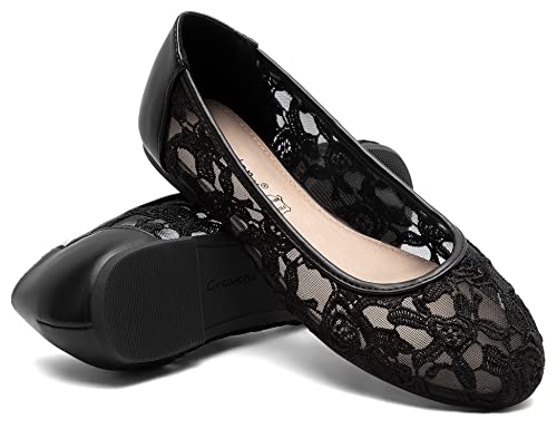 Greatonu Ladies Black Lace Ballet Flats Cut Out Ballerina Pumps for Women 6 UK/3...