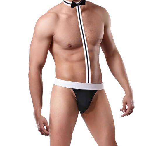 ALLWYOU Men's Sexy Bodysuit Waiter Cosplay Costume Bow Tie Suspender Thong Jocks...