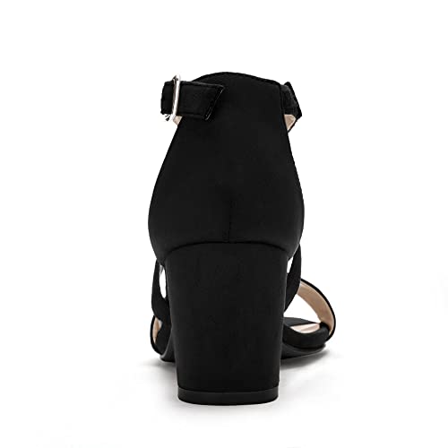 Allegra K Women's Open Toe Cross Strap Mid Block Heel Sandals Black 7 UK/Label S...