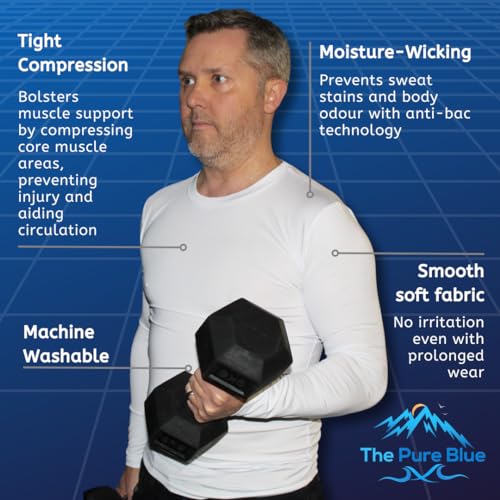 The Pure Blue Men's White Long-Sleeved Compression Top - [Large] Tight Fit Body ...