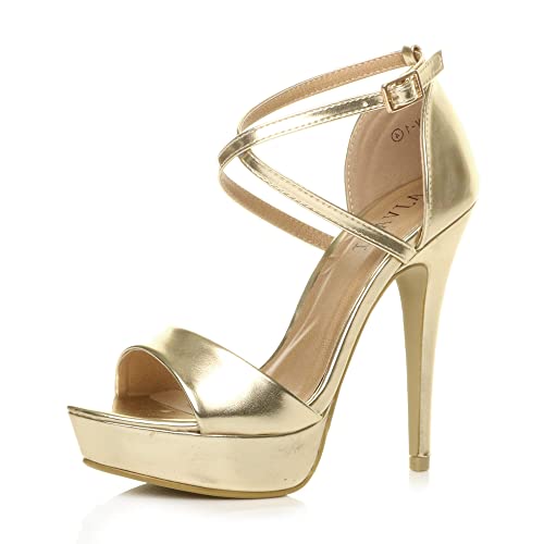 Ajvani Womens Ladies Platform high Heel Peeptoe Cross Over Strappy Shoes, Gold,G...