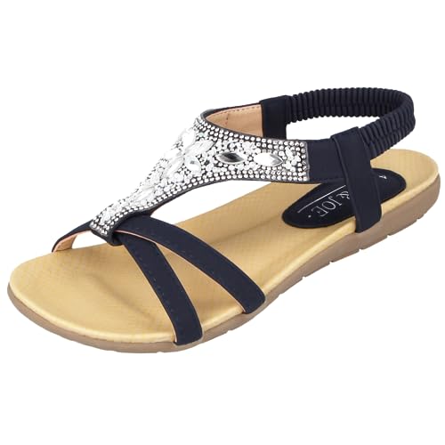 Jo & Joe Ladies Faux Leather Peep Open Toe Sling Back T-Bar Dimante Flat Flip Fl...