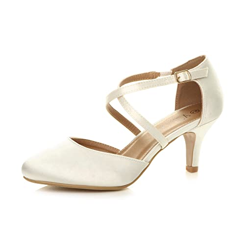 AJVANI mid high Heel Strappy Crossover Wedding Sandals Shoes Size 3 36 Ivory Sat...