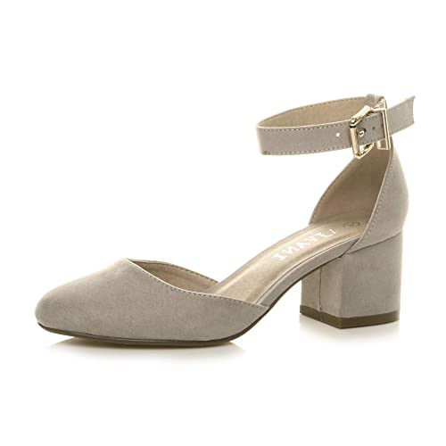 AJVANI Low mid Block Heel Ankle Strap Court Shoes Sandals Size 7 40...