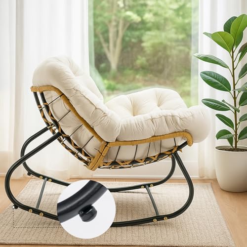 Egg Chairs Oversized Rattan Wicker Outdoor Rocking Chair Metal Frame Garden Rock...