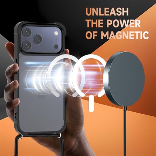 CAROKI Magnetic Crossbody Lanyard Case for iPhone 17 Pro Max,Ultra Clear Case Co...
