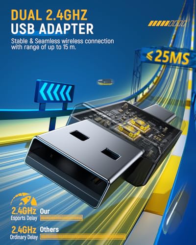 Tatybo Wireless Gaming Headset for PC Ps5 Ps4, 2.4GHz USB & Type-C & Bluetooth G...