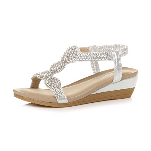 AJVANI mid wedge heel diamante t-bar elastic slingback sandals size 7 40...
