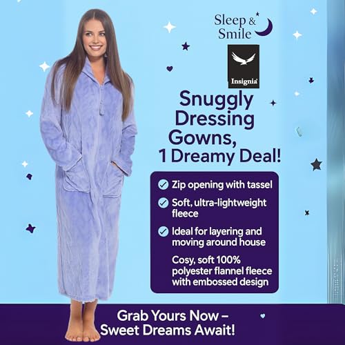 INSIGNIA Ladies Zip Up Dressing Gown with Tassel – 100% Polyester Flannel Flee...