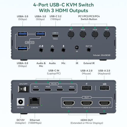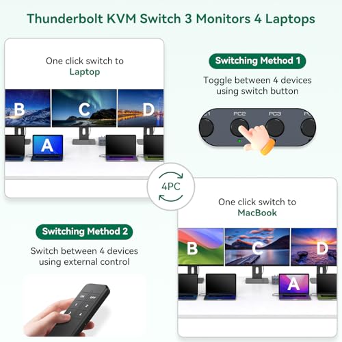Thunderbolt 4 KVM Switch Docking Station for 3 Monitors 4 laptops/Macbooks Exten...