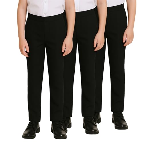 SchoolStitch® Boys School Trousers, Pack of 3 Stylish Slim Fit Half Elastic Wai...