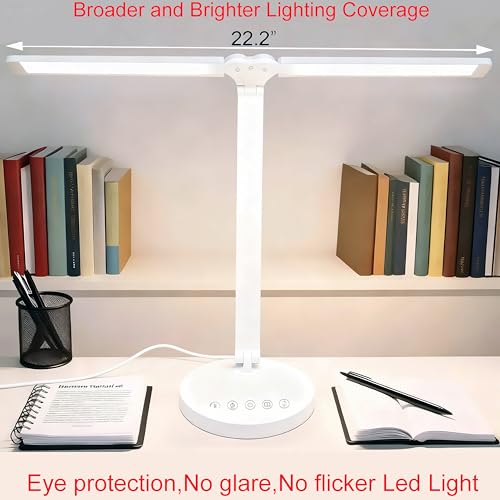 Dual Swing Arm LED Desk Lamp W/Dual Heads,Eye-Caring Table Reading Light W/5 Lig...