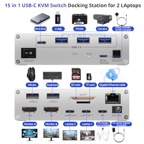 YOUTINGHDAV KVM Switch 2 Monitors 2 Computers USB C, USB3.0 KVM Switch 2 Laptops...