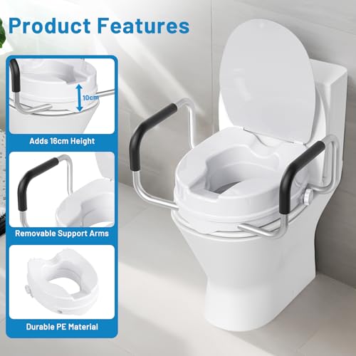 Raised Toilet Seat with Handles, Adds 4 Inches (10cm) Height Mobility Toilet Sea...