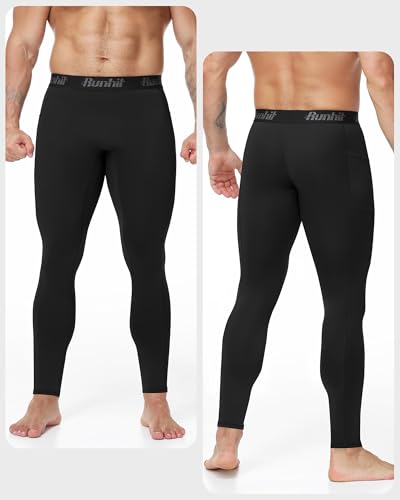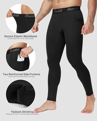 Runhit Men’s Running Leggings with Pockets, Gym Compression Pants Sports Tight...