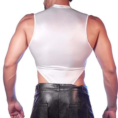 QiaTi Men’s Bodysuit Bulge Pouch Sleeveless Undershirts Sexy Patchwork Sheer J...