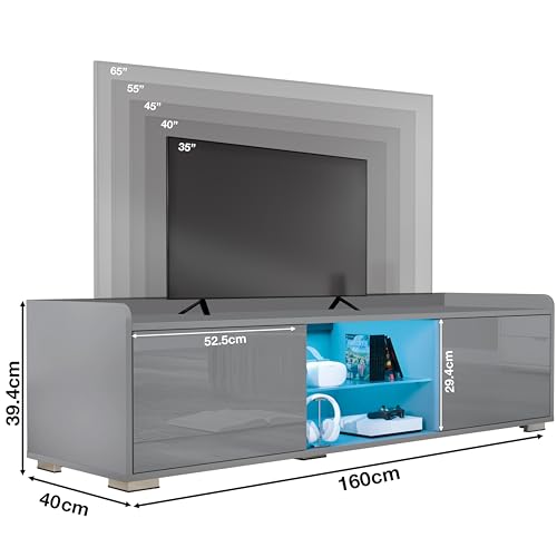 Blisswood Large TV Unit – 160 Cm High Gloss LED TV Cabinet with 20-Colour RGB ...