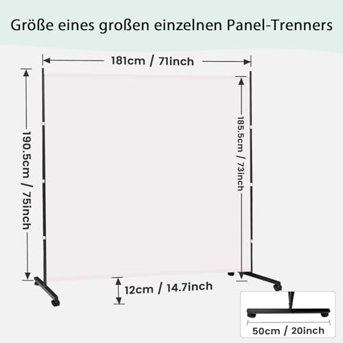KEORTUN Single Large Room Divider Panel 180W x 190H cm Freestanding Privacy Scre...